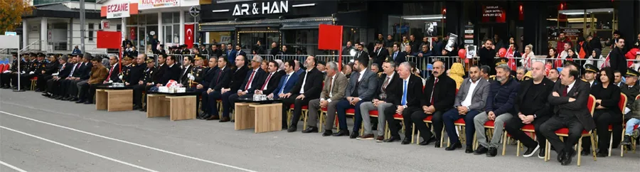 Değerli davetliler, millet egemenliğine dayanan Cumhuriyet idaresi, Türkiye Cumhuriyeti’ne vatandaşlık bağı ile bağlı olan herkese fert olma hakkını vermiş ve bunun sorumluluğunu yüklemiştir. İnsanı ön planda tutan bu anlayışla, devletin ve toplumun geleceğinden kendini sorumlu tutma şuuru geliştirilmiş, insanlığın ortak değeri olan medeniyetin gelişimine büyük katkılar sağlanmıştır. Cumhuriyet ile birlikte Türk Milleti, modern dünyanın bir üyesi olmanın haklı onurunu tatmış; devletimiz gelişen ve kalkınan bir “dünya devleti” olmanın kıvancına erişmiştir. Bugüne geldiğimizde ülkemiz, Cumhurbaşkanımız Sayın Recep Tayyip Erdoğan önderliğinde her alanda ortaya koyduğu başarılarla, “Türkiye Yüzyılı” hedefine kararlı adımlarla yürüyüşünü sürdürmektedir.