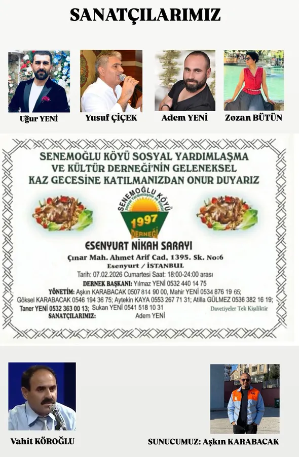 Başkan YENİ; Ortak değerimiz olan Senemoğlu kimliği etrafında bütünleşmek dileğiyle tüm köylülerimizi ve dostlarımızı bu anlamlı geceye davet ediyoruz dedi.