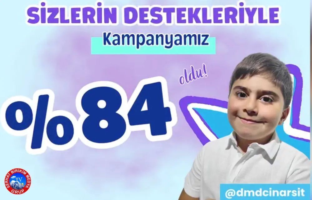 Türkiye'de nadir görülen bir kas hastalığı olan DMD ile mücadele eden 7 yaşındaki Çınar Şit'in tedavi masraflarını karşılamak üzere başlatılan yardım kampanyası yüzde 84'e ulaştı.