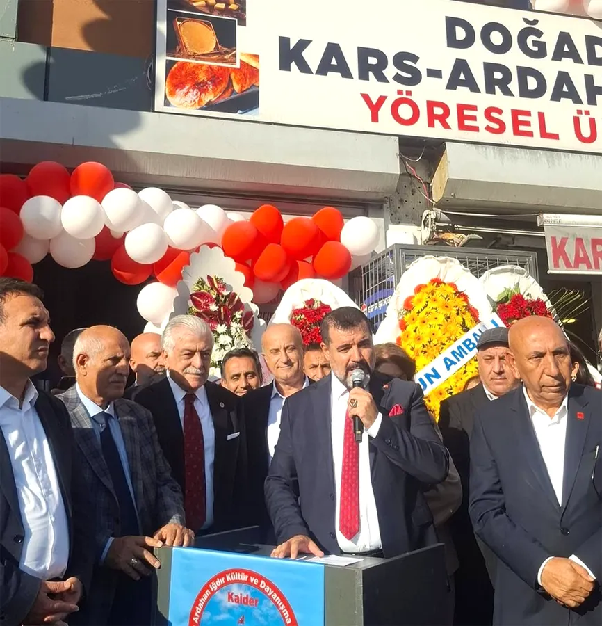 Burçay Yıldız; “Bugün burada, Kars, Ardahan Iğdır illerimizi temsil eden, birlik ve dayanışmanın simgesi olan KAİDER Derneğimizin yeni hizmet binasının ve yöresel ürünler mağazamızın açılışını yapıyoruz.