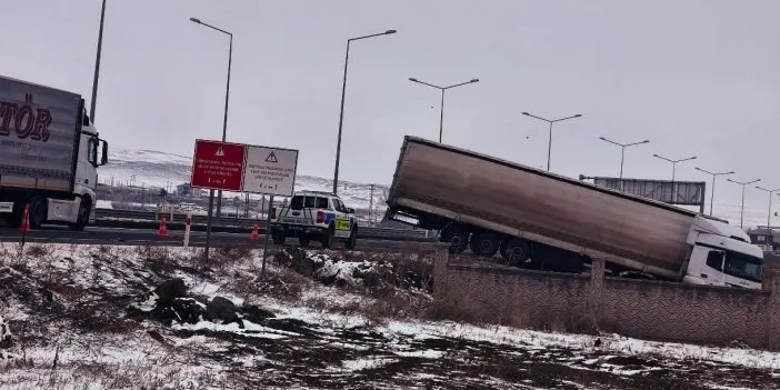 Edinilen bilgilere göre, henüz sürücüsünün ismi öğrenilemeyen çekici ve dorseden oluşan tır, kavşak yakınlarında kontrolden çıkarak yol kenarındaki refüje çıktı. Kazanın ardından dorsenin bir kısmı istinat duvarı üzerinde asılı kaldı.