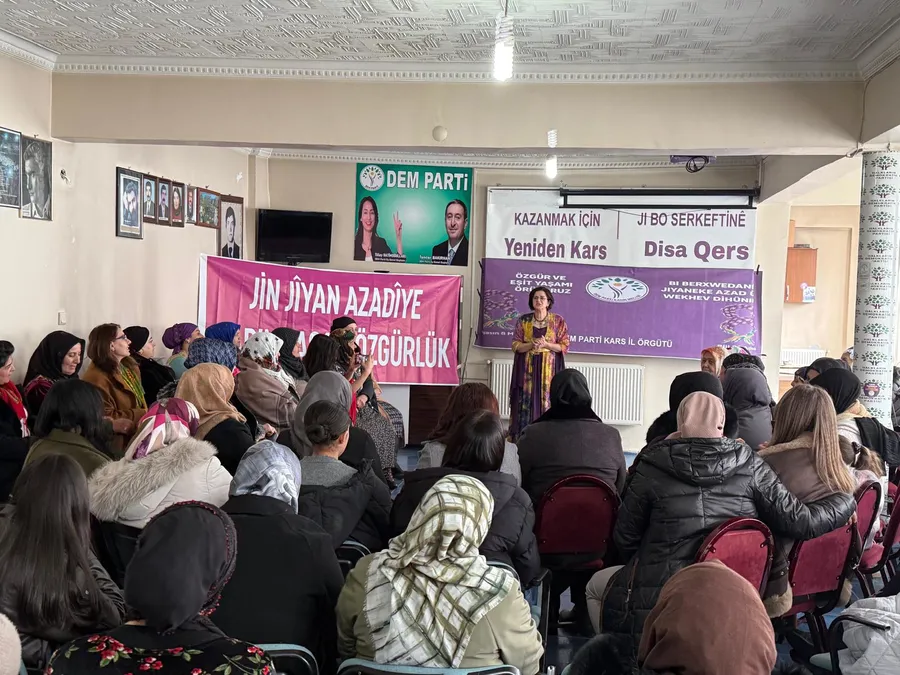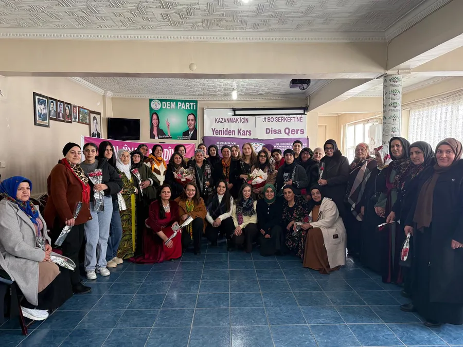 DEM Parti Kars İl Başkanlığında bir araya gelen kadınlar yönelik yaptıkları konuşmalarında, 8 Mart Dünya Emekçi Kadınlar gününün anlam ve önemini anlattılar.