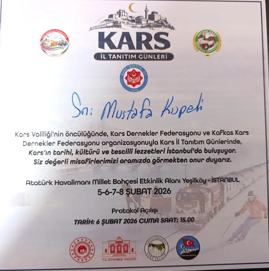 Mustafa Küpeli, Davetten dolayı Tanıtım günleri heyetinden Kars Kültürevi Başkan Yardımcısı Muzaffer Yıldız ve Kars Kültürevi Başkan Yardımcısı Bora İzkübarlas teşekkür etti.