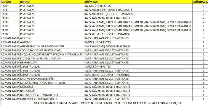 Çalkın, kura kapsamında Kars’a 18’i uzman, 22’si pratisyen olmak üzere toplam 40 hekimin görevlendirileceğini bildirdi.