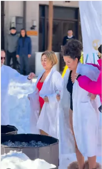 Kars'ın Sarıkamış ilçesinde yer alan ve kristal karı, sarıçam ormanları arasındaki uzun pistleriyle kış turizminin gözde merkezleri arasında bulunan 2 bin 634 rakımlı Sarıkamış Kayak Merkezi'nde yerli ve yabancı tatilciler, kristal karların üzerinde buz banyosu yaparak unutulmaz bir deneyim yaşadı.