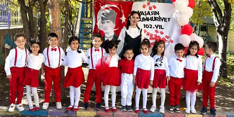 Cumhuriyet Bayramı'nın 102'inci yıl dönümü kapsamında minik öğrenciler okullarında gerçekleştirdikleri kutlama programıyla doyasıya eğlendiler.