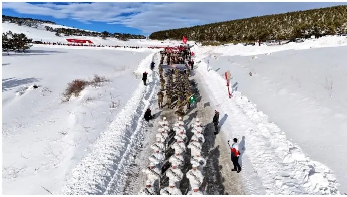 Sarıkamış Harekâtı’nın 111. yılı anma etkinlikleri kapsamında on binlerce vatandaş, Kars’ın Sarıkamış ilçesinde bir araya gelerek eksi 15 derece soğukta şehitler için yürüdü. Ellerinde Türk bayraklarıyla Kızılçubuk Toplanma Alanı’nda buluşan kalabalık, Ay Yıldız Tören Alanı’na doğru tek yürek halinde yürüyüşe geçti.