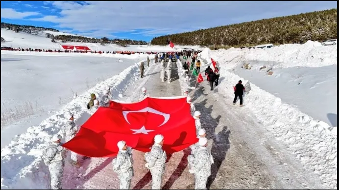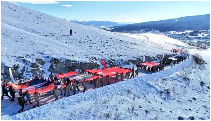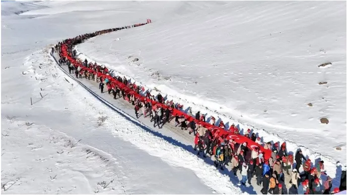 Enver Paşa komutasındaki Osmanlı ordusunun Birinci Dünya Savaşı’nda vatan savunması için başlattığı Sarıkamış Harekâtı’nda şehit düşen askerler, 111 yıl sonra da unutulmadı. Dualar eşliğinde başlayan yürüyüşte, 100 metre uzunluğundaki Türk bayrağı omuz omuza taşındı.