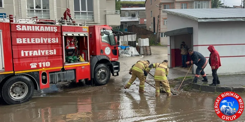Sarıkamış Belediyesi Temizlik İşleri Müdürlüğü ekipleri, bir taraftan tıkanan kanalizasyon şebekesini açarken, itfaiye ekipleri ise su dolan işyeri ve evlerde çalışma başlattı.