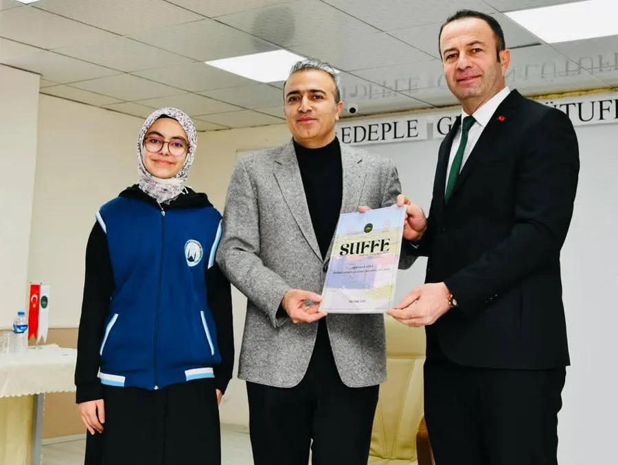 Program sonunda Valimiz Sn Hayrettin ÇİÇEK’e, okulumuz tarafından hazırlanıp İlk sayısı basılan “SUFFE” isimli dergi okul müdürü Erdal Çakıcı tarafından kendilerine takdim edildi.