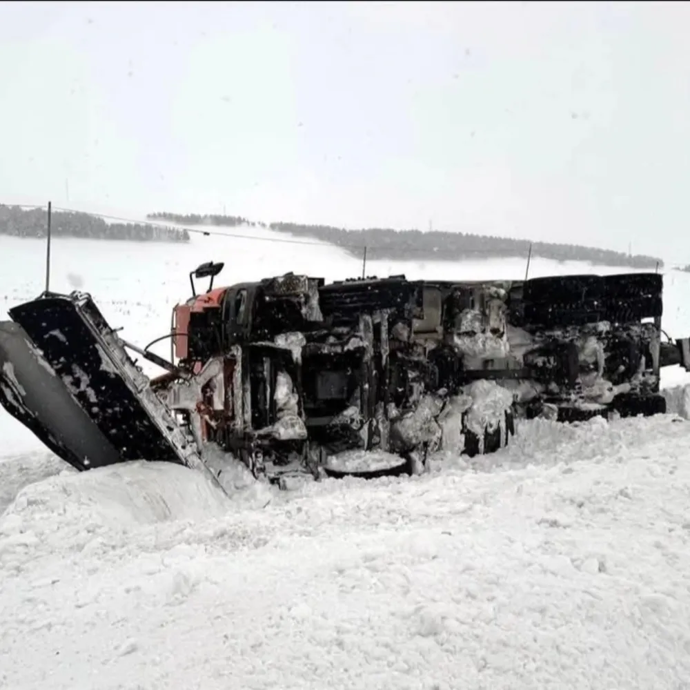 Ardahan–Kars Karayolu Putka Gölü mevkiinde, Karayolları ekiplerinin karla mücadele çalışmaları sırasında bir kar küreme aracı henüz bilinmeyen bir nedenle devrildi.