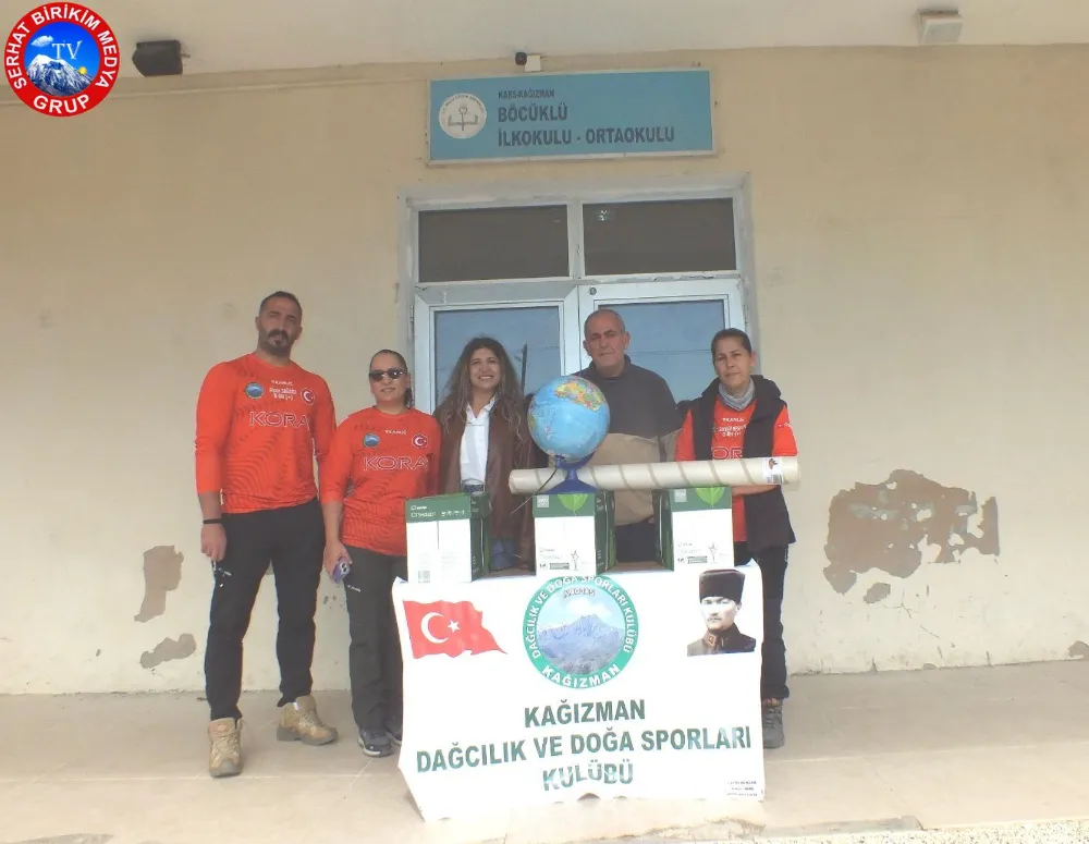 Kağızman’ın kırsal köylerinde eğitim gören çocukların, eğitim materyallerine erişimini kolaylaştırmak, motivasyonlarını artırmak ve doğayla iç içe, sürdürülebilir bir yaşamı desteklemek amacı taşıyan proje kapsamında öğrencilerimizle kısa bir doğa yürüyüşü yaparak, onlarla doğa, çevre ve dağcılık ve spor üzerine söyleşi de yaptık. Eğitim metaryalleri bağışçılarımızın desteğiyle alındı.