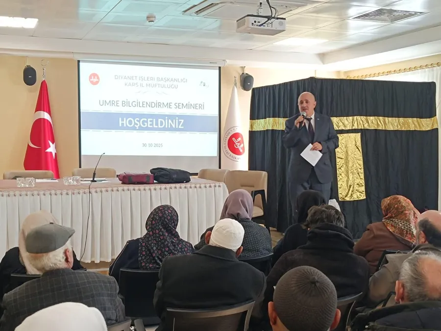 Diyanet İşleri Başkanlığı Umre Organizasyonu kapsamında, Kars’tan direkt uçuşla umreye gidecek olan vatandaşlara yönelik bilgilendirme semineri, Kars İl Müftülüğü tarafından düzenlendi.