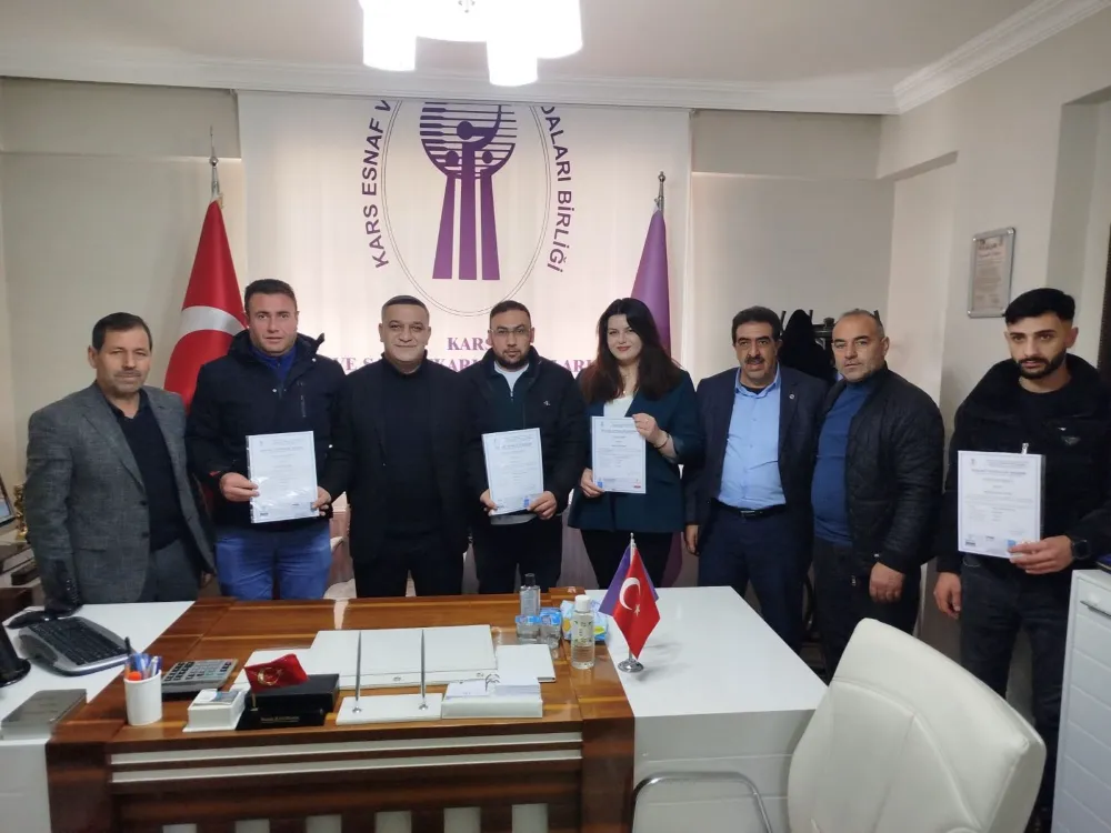 Belgeler, Kars Esnaf ve Sanatkarlar Odalar Birliği Başkanı Murat Bakırhan tarafından kursiyerlere takdim edildi.