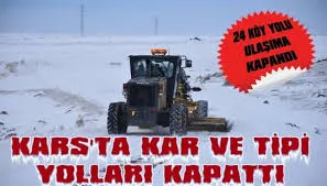 Kars'ta etkili olan kar yağışı ve tipi nedeniyle 2 köy yolu ulaşıma kapandı. Kapalı yolların açılaması için çalışma başlatıldı.