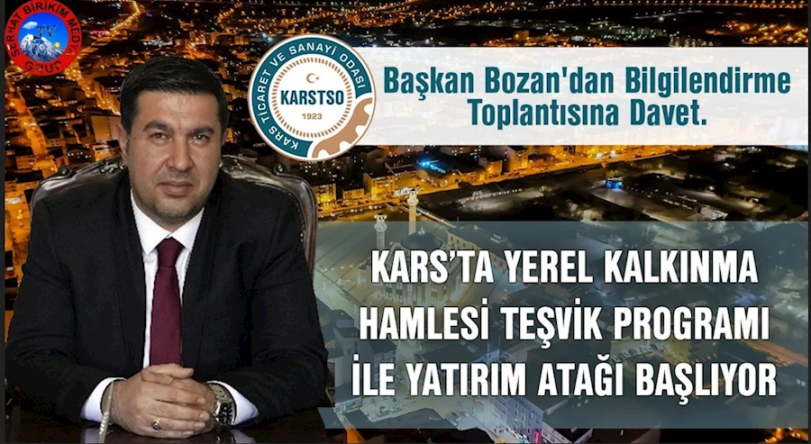 “Kars’ın değerlerini öne çıkararak Kars’a değer katmak isteyen tüm yatırımcılarımızı bilgilendirme toplantımıza davet ediyorum. Serhat Kalkınma Ajansı işbirliğiyle 29 Ağustos Cuma günü saat 14:00’te Kars Şehit Albay Şentürk Aydıner Gençlik Merkezi Toplantı Salonu’nda düzenleyeceğimiz toplantıda, Yerel Kalkınma Hamlesi Teşvik Programı hakkında detaylı bilgiler paylaşılacaktır. Yatırım yapmayı düşünen tüm katılımcılarımızı toplantımıza bekliyoruz.”