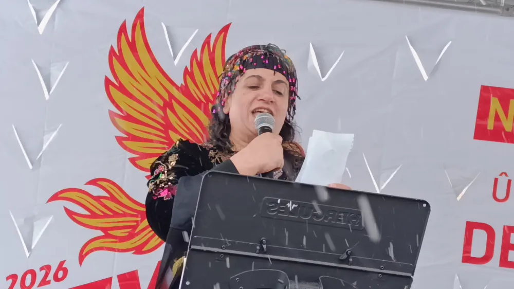 Kars'ta kar yağışı altında Nevruz ateşi yakıldı